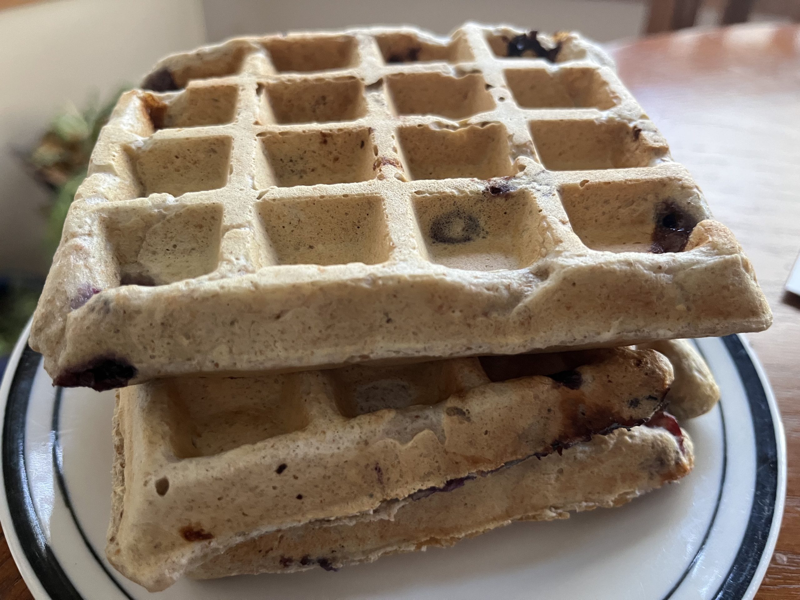 I like adding berries to the waffles to make them even healthier and full of flavour. Blueberries or mixed berries work well. I usually use frozen berries and make sure to thaw them first before adding to the batter so the waffles cook evenly.